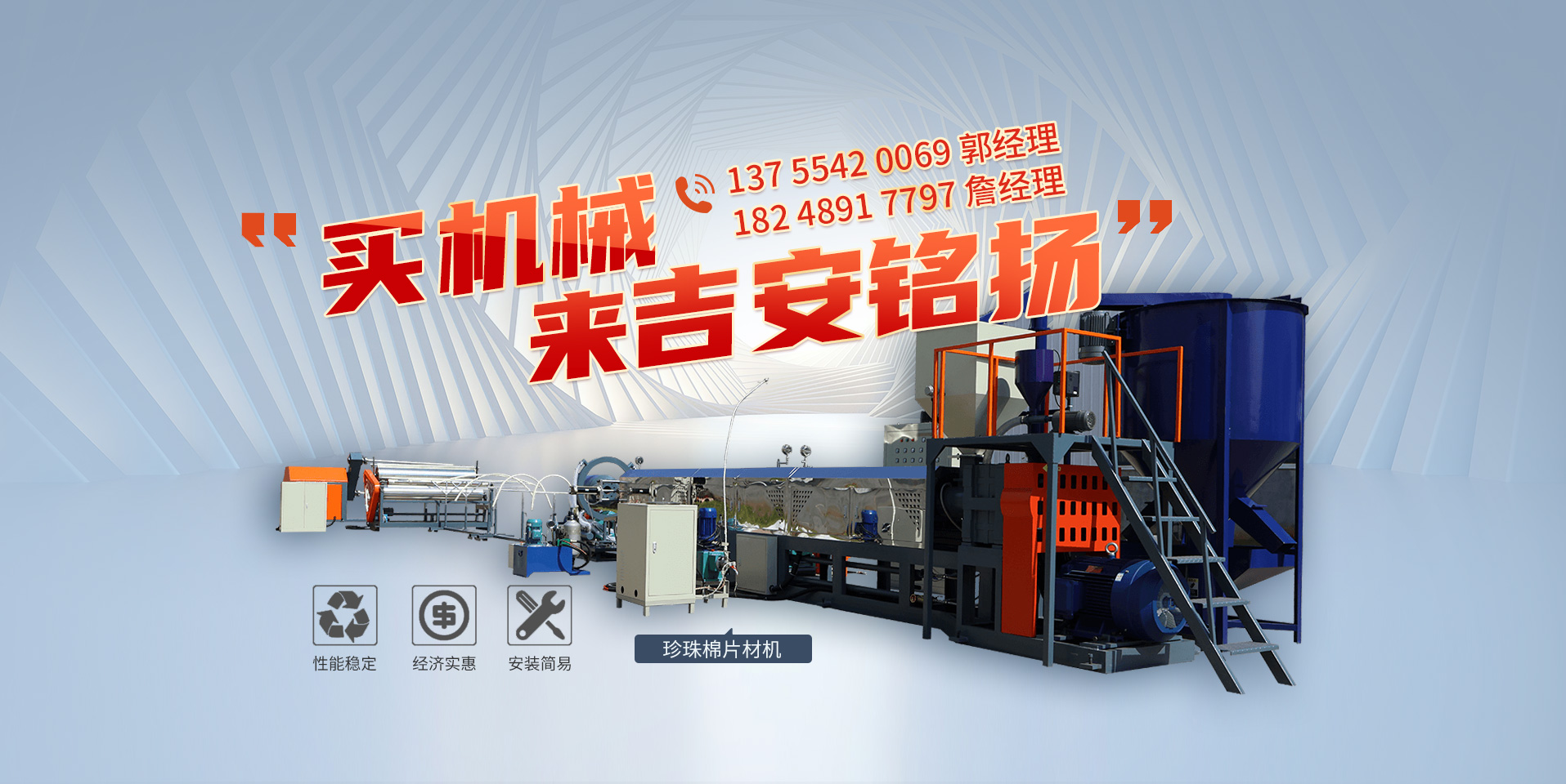 吉安銘揚機械有限公司成立于2019年,總經理有著二十多年從業經驗,是一家專注于珍珠棉機械設備研發、開發、生產及銷售的現代高科技企業,主要產品有:珍珠棉發泡機、覆膜機、珍珠棉電復合機、珍珠棉造粒機等數十種產品,應用于包裝、建筑、材料等行業??偛考把邪l基地設立于風景秀麗的紅色革命根據地吉安。